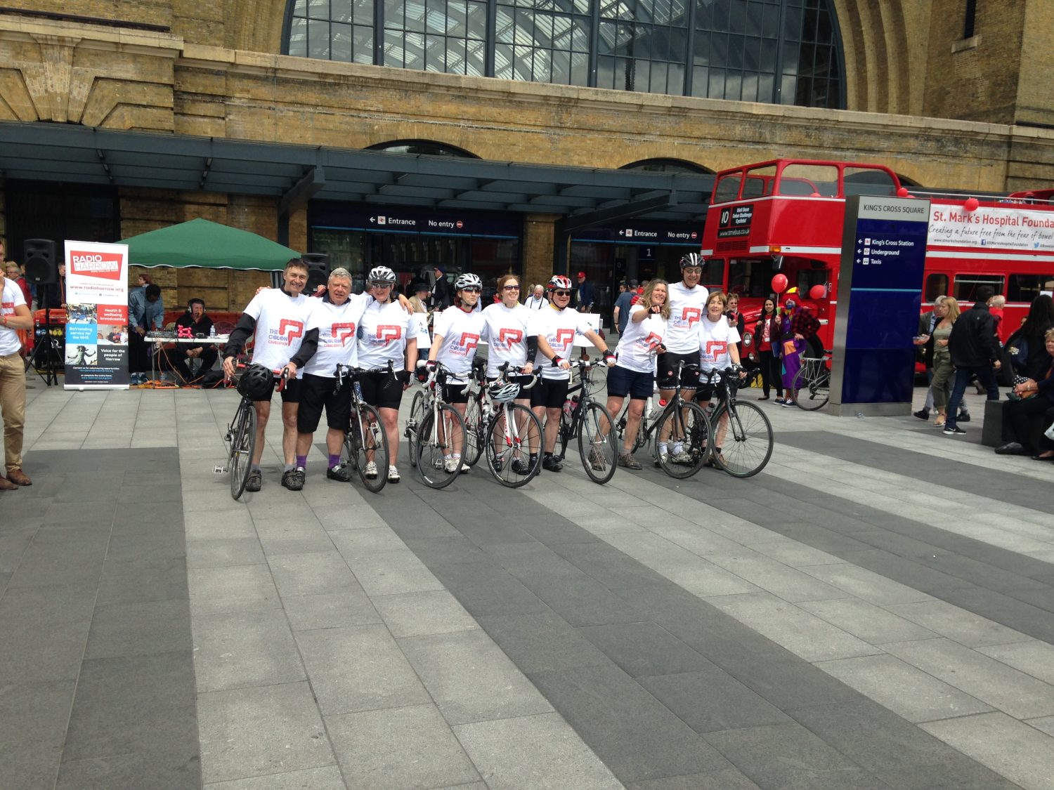 Radio Harrow supported the cyclists from St Mark’s Hospital Foundation’s Colon Challenge as they crossed the finish line after their 280-mile long bike ride at King’s Cross Square.